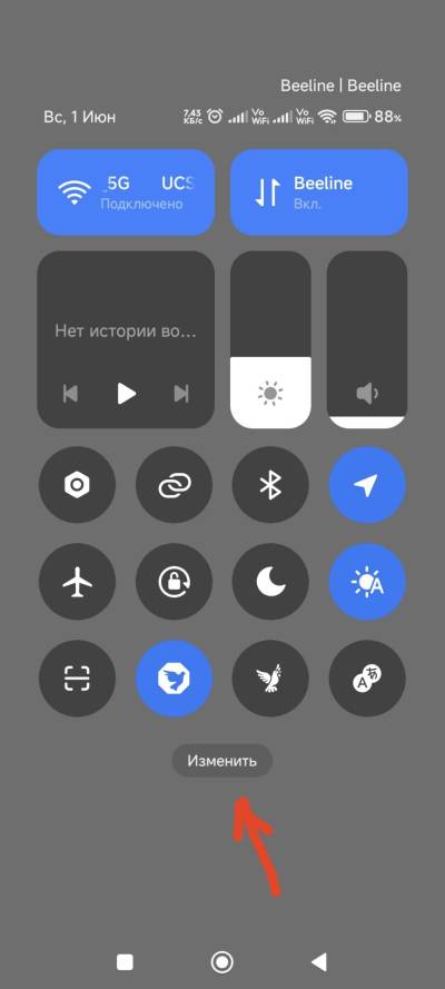 4). Вернуться на главный экран приложения, тапнуть на надпись «CONNECT», затем на «DISCONNECT». Чтобы не запускать постоянно это приложение, надо перейти в настройки значков запуска функций смартфона в шторке. В последнем ряду должен появиться значок с голубем, перетащите его в самые верхние ряды, чтобы он постоянно был «под рукой».