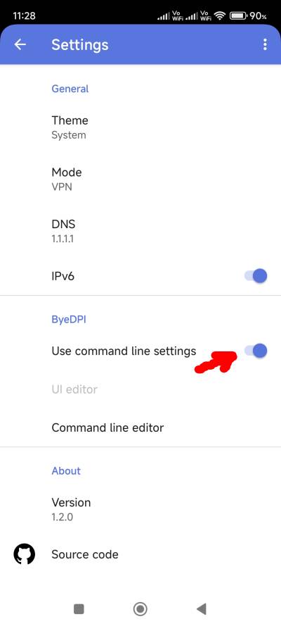 3). Затем надо тапнуть на строку ниже «COMMAND LINE EDITOR», вас перекинет на другой экран, где можно ввести аргументы управления сетевыми пакетами. Нажать на надпись «COMMAND LINE ARGUMENTS» и вставить туда скопированный текст из блока ниже:
